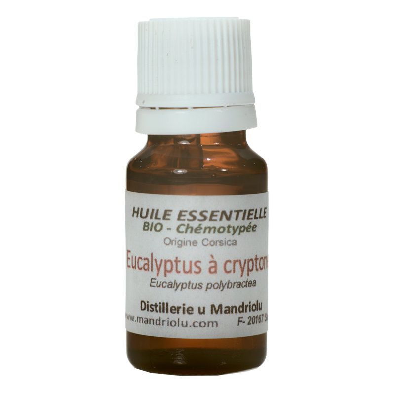 Parmi les nombreuses huiles essentielles d'Eucalyptus, celle-ci provenant uniquement de Corse possède un chémotype en tous points remarquable. La présence de Cryptone caractéristique confère à cette HE une place de choix.